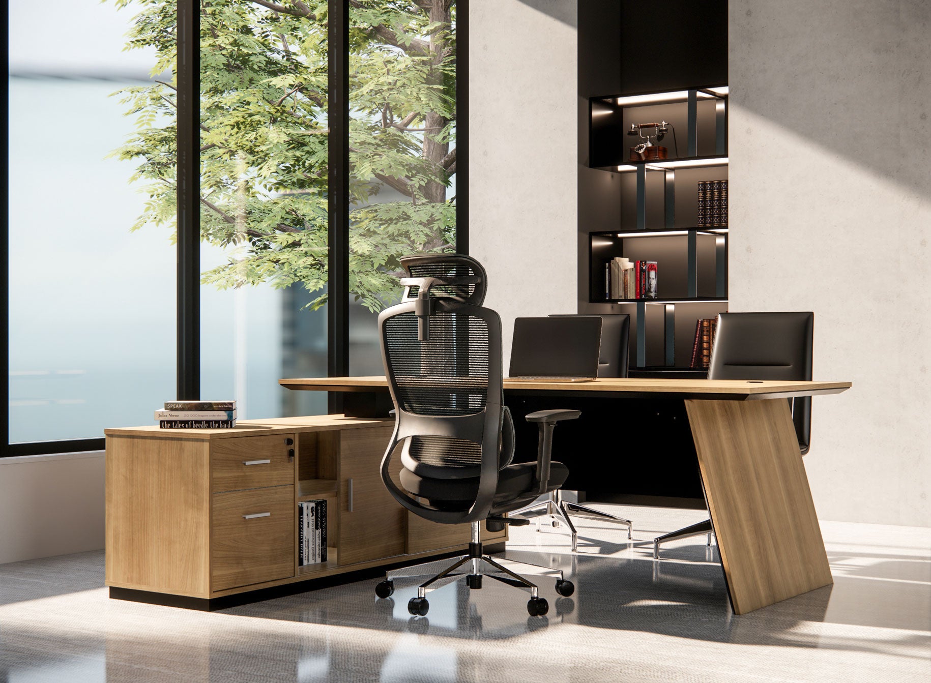 The Leonardo Executive Desk is a modern and stylish piece of furniture that is designed to elevate any workspace. In addition to its eye-catching design, the Leonardo Executive Desk is also highly functional. The side credenza with sliding doors provides ample storage space for office supplies, while the two-tier drawer is perfect for keeping files and other important documents organized. The Leonardo Executive Desk is an excellent choice for anyone looking for a high-quality, modern, and functional desk. Whether you're a professional looking to create a stylish and productive workspace or simply someone who appreciates great design, the Leonardo Executive Desk is definitely the perfect choice.